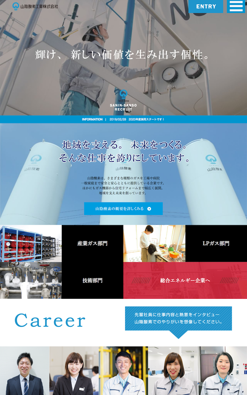 山陰酸素株式会社様の求人コンテンツを製作しました(ジャプロサイトメーカー7上のサイトへのコンテンツ追加と改修)。